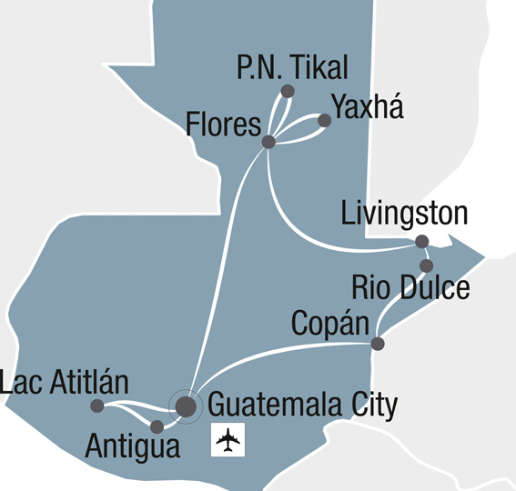 Guatemala City - Copán - Rio Dulce - Livingston - Flores - Panajachel - Antigua